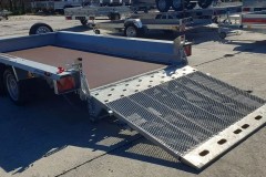 Seria przyczep przeznaczona do przewozu maszyn budowlanych oraz bardzo ciężkich materiałów. Stabilne podwozie połączone z trwałą konstrukcją spawaną skrzyni gwarantuje wieloletnią trwałość przyczep serii BUILDER. Solidne uchwyty do mocowania ładunku zapewniają bezpieczeństwo przewożonych towarów. Przyczepy samochodowe do przewozu minikoparek serii BUILDER. Przyczepa posiada TRAP najazdowy.